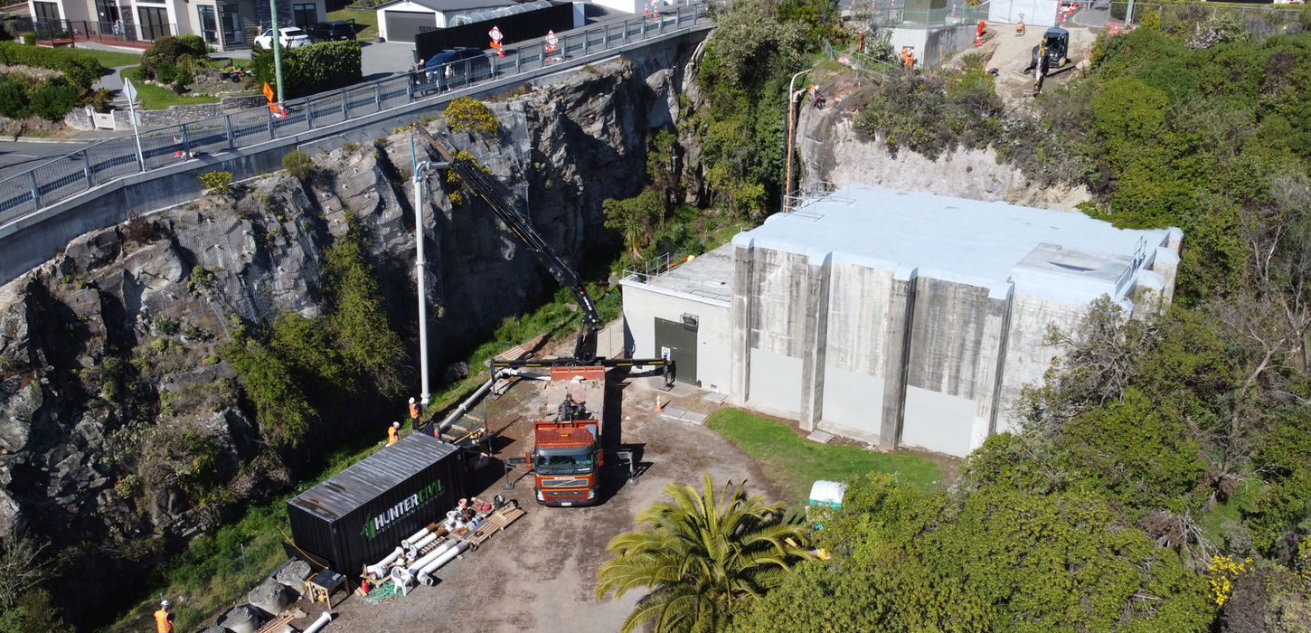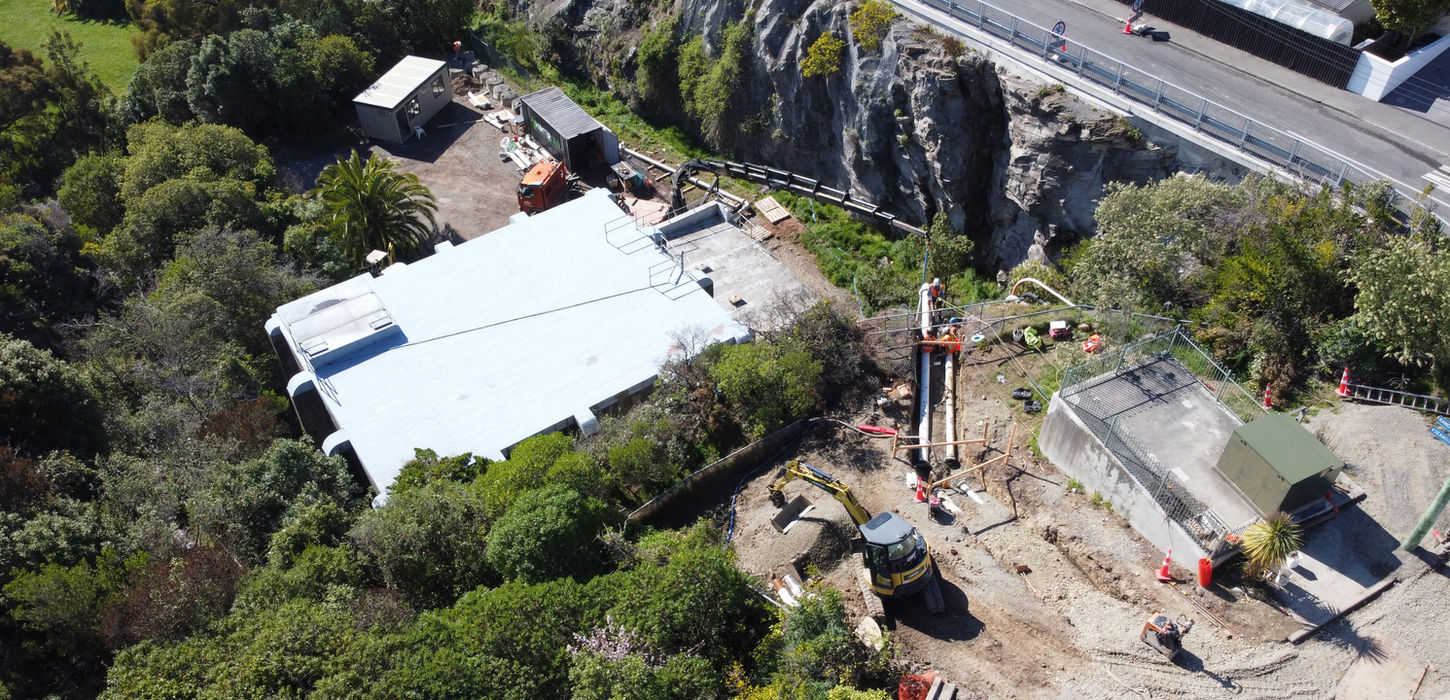 The pipelines were installed vertically up a cliff face which required the design and construction of rockfall mitigation netting and rock anchor bolts to restrain the pipeline. Staff and specialist subcontractors completed this by abseiling and scaling the rock face. This project was crucial for enhancing the reliability and capacity of the local water supply network, ensuring long-term benefits for the Mt Pleasant community.
